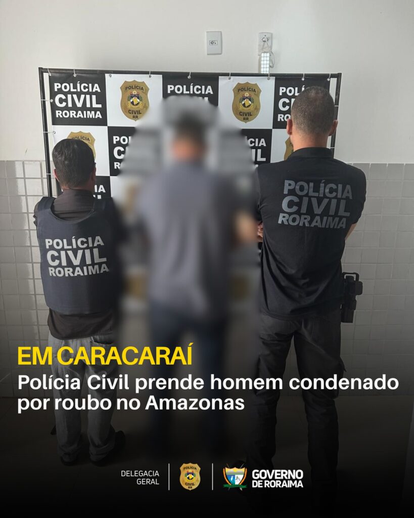 A PCRR (Polícia Civil de Roraima), por meio da Delegacia de Caracaraí, cumpriu o mandado de prisão contra o marinheiro A.C.S.R., de 41 anos, condenado pelo crime de roubo praticado no estado do Amazonas. A prisão ocorreu no final da tarde do último dia 04, quando o homem procurou a unidade policial para comunicar um suposto furto do qual alegava ter sido vítima.