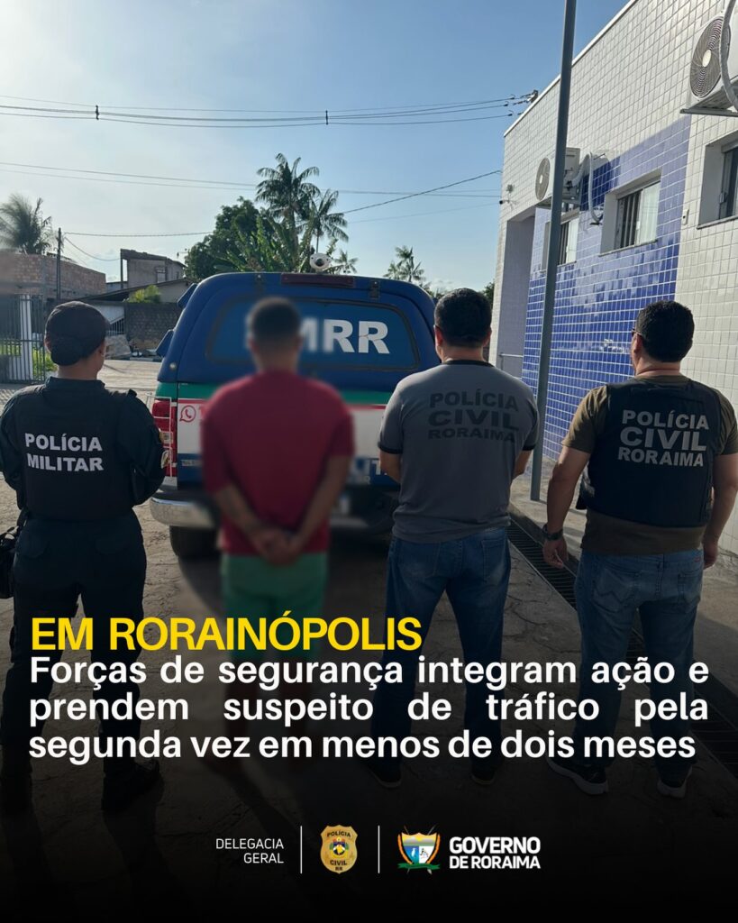 Uma ação integrada das forças de segurança do Estado, que envolveu a PCRR (Polícia Civil de Roraima), PMRR (Polícia Militar de Roraima), PPRR (Polícia Penal de Roraima) e FICCO (Força Integrada de Combate ao Crime Organizado), desarticulou mais um ponto de venda de drogas em Rorainópolis e prendeu, no sábado, dia 1⁰, o venezuelano J.A.G.M., de 31 anos, reincidente na prática de tráfico de entorpecentes.