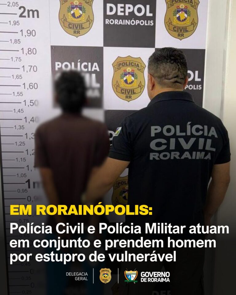 Polícia Civil e Polícia Militar atuam em conjunto e prendem homem por estupro de vulnerável em Rorainópolis 16/08/2025