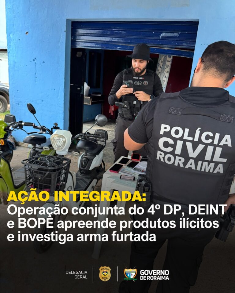 AÇÃO INTEGRADA: Operação conjunta do 4º DP, DEINT e BOPE apreende produtos ilícitos e investiga arma furtada 07/08/2025