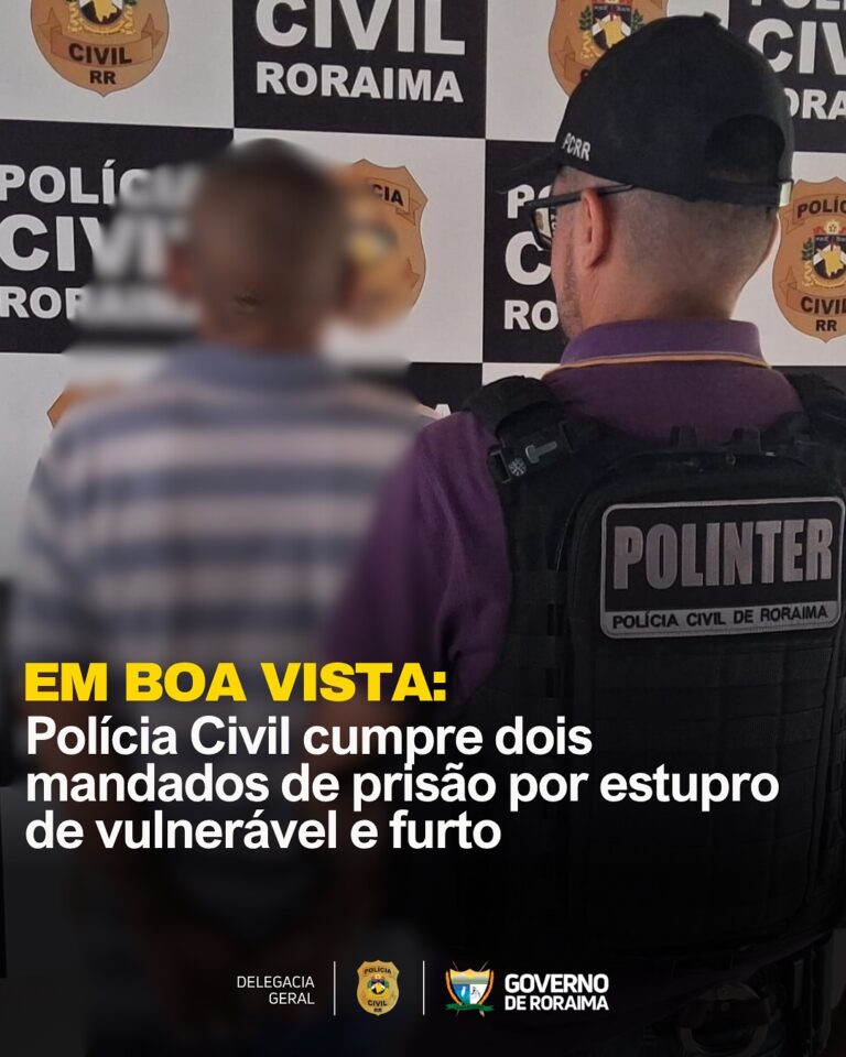 EM BOA VISTA: Polícia Civil cumpre dois mandados de prisão por estupro de vulnerável e furto 23/07/2025
