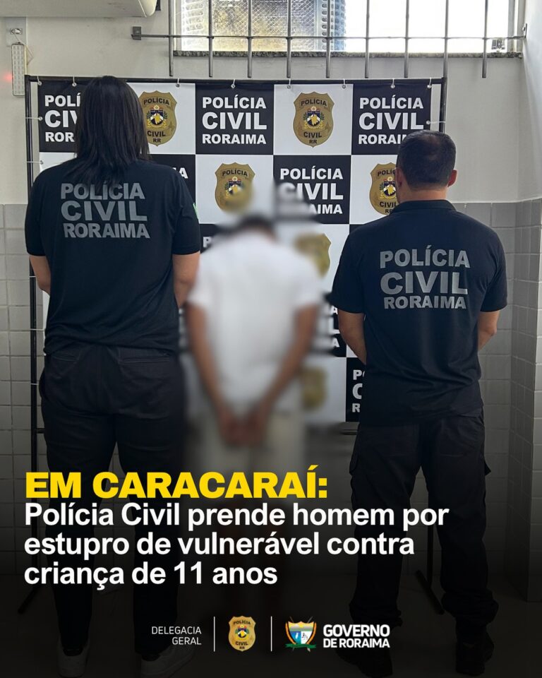 EM CARACARAÍ: Polícia Civil prende homem por estupro de vulnerável contra criança de 11 anos 11/08/2025