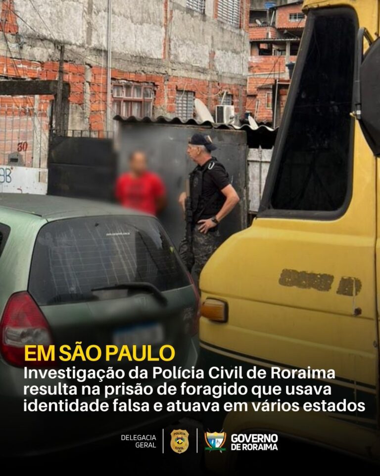 EM SÃO PAULO: Investigação da Polícia Civil de Roraima resulta na prisão de foragido que usava identidade falsa e atuava em vários estados 21/01/2026