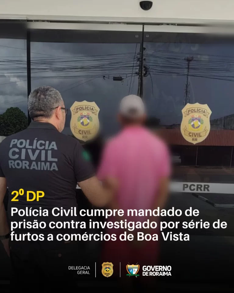 Polícia Civil cumpre mandado de prisão contra investigado por série de furtos a comércios de Boa Vista 24/11/2025
