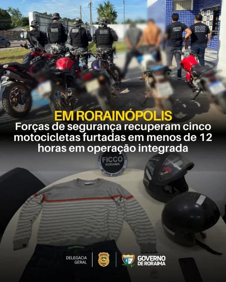 Forças de segurança recuperam cinco motocicletas furtadas em menos de 12 horas em operação integrada em Rorainópolis 24/11/2025