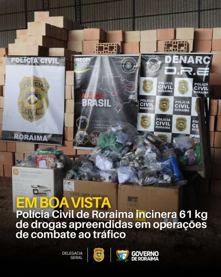 Polícia Civil de Roraima incinera 61 kg de drogas apreendidas em operações de combate ao tráfico 01/12/2025