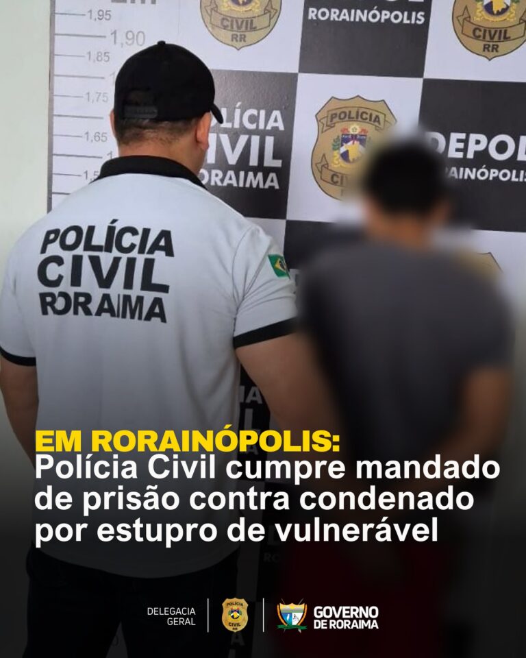 EM RORAINÓPOLIS: Polícia Civil cumpre mandado de prisão contra condenado por estupro de vulnerável 01/09/2025